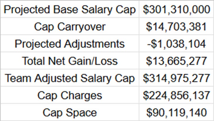 The following cap projection is based on information gathered from multiple sources: the NFLPA Public Salary Cap Report and Over the Cap.