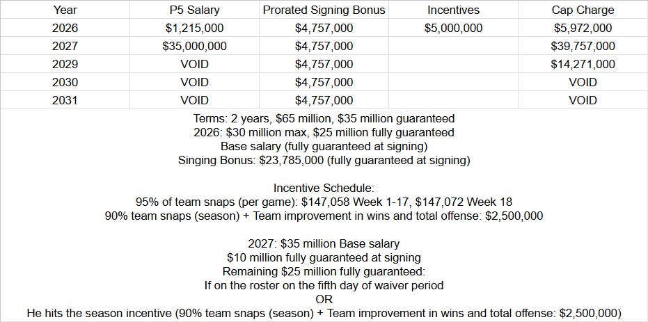 Given the guaranteed money in the Fields contract, that’s the starting point. So, the Jets should offer him $35 million guaranteed. They should offer him a 2-year contract for a max value of $65 million.