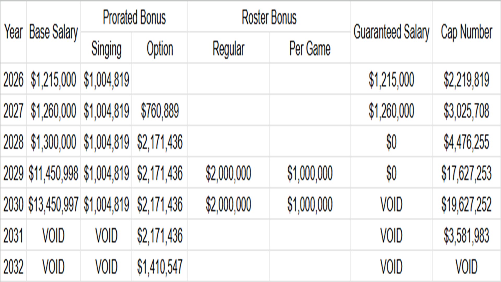 Roster Bonus: $2 million (paid on the fifth day of the league year)