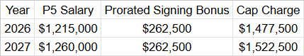 The Jets should sign Willis to a two-year deal, just in case they don’t want to start a 2027 rookie QB right away. Willis’s limited experience could have him land with the Jets for a minimum base salary contract of 2 years, $3 million ($525,000 guaranteed).